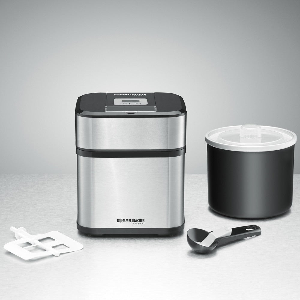 Med den mångsidiga ROMMELSBACHER glassmaskinen är det mycket enkelt att skapa frysta delikatesser även hemma. Den energieffektiva, men kraftfulla 12 W-motorn ger en jämn rörelse av ismassan inuti den förfrysta frysskålen och ger perfekt krämiga resultat. Oavsett om det är glass gjord på naturliga ingredienser eller fryst yoghurt med smaskiga ingredienser oavsett om det är en uppfriskande fruktsorbet eller trendiga slushies – möjligheterna är nästan oändliga. Att tillaga glass med favoritingredienser (upp till 500 ml per omgång) möjliggör personliga iskreationer av alla slag, oavsett om de är sockerfria, fettsnåla, veganska eller laktosfria.
