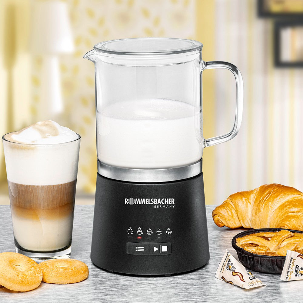 Tack vare den universella omröraren som kan tas bort för enkel rengöring, erbjuder denna mjölkskummare 5 praktiska funktioner för mjölk och mjölkalternativ: varmt mjölkskum antingen fast och finpoligt eller krämigt fint för cappuccino, latte macchiato & co, kallt mjölkskum för frappé, varm omrörd mjölk för caffè latte eller chai latte och försiktigt rörd varm choklad. MS 625 tar med sig mångsidiga kaffespecialiteter och mer till ditt hem eller kontor och kan även tas med på semestern. Glaskannan är avtagbar, gör en fin figur även vid bordet och är lätt att rengöra i änden. Det "lättanvända" användarkonceptet med en knapp för programval, en start/stopp-knapp och tydliga LED-indikatorer samt automatisk avstängning gör den intuitivt enkel att använda. Den bästa driftsäkerheten garanteras och det faktum att alla löstagbara delar kan läggas i diskmaskinen gör användarvänligheten perfekt. Det är inte bara kaffefantaster som kommer att älska denna sofistikerade, praktiska mjölkskummare från ROMMELSBACHER, som imponerar med sin topprestanda!